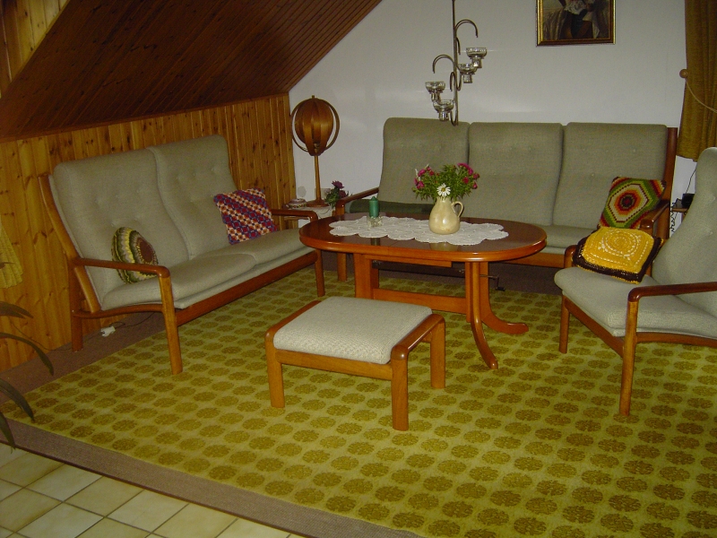 | Die Ferienwohnung ist eine von unserem Wohnhaus getrennte komplette Wohnung mit separatem Eingang. (Bild Startseite, linker Balkon) Sie hat einen großen Wohnraum, drei Schlaf- räume, Küche und Bad und ist ca. 80 qm groß. Sie ist ausgelegt für 5 Personen (3 Erwachsene und 2 Kinder). Im Bedarfsfall kann ein vorhandenes Baby-Bett aufgestellt werden. Zur Ausstattung gehören: Bettwäsche Hand- tücher, eigener Telefonanschluß, WLAN, SAT-TV , Radio mit CD-Player, Kaminofen, eine Heimorgel, Haarfön, verschiedene Spiele, zahlreiche Bücher, einige "Trimm-Dich" Gerätschaften - Fahrräder. Hunde sind willkommen (bitte vorher nachfragen) |